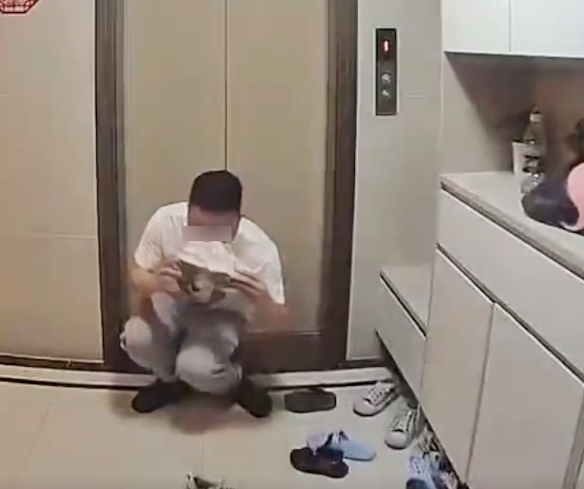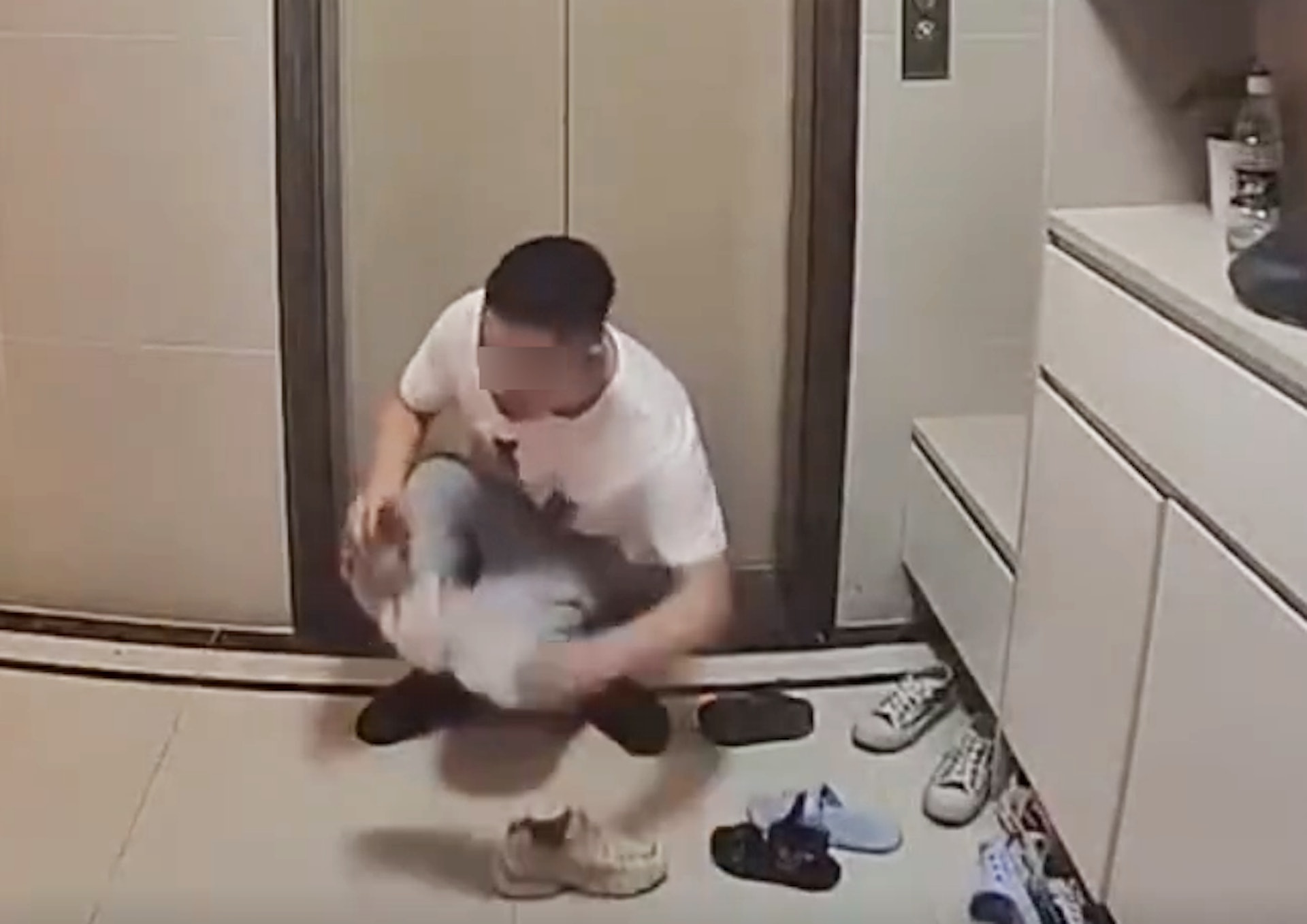 / r; q7 n: j7 ^8 j: L( |. Q7 ]tvb now,tvbnow,bttvb片中地點為肇慶吾悅廣場1個屋苑的樓層大堂,畫面可見1名身穿白衣的男子蹲於其中1單位的門外,拿起1隻女裝白色波鞋,將鞋筒放近鼻子旁邊嗅聞。(微博影片截圖)5.39.217.76% k' w& U1 c" W+ `" r$ A, P, A