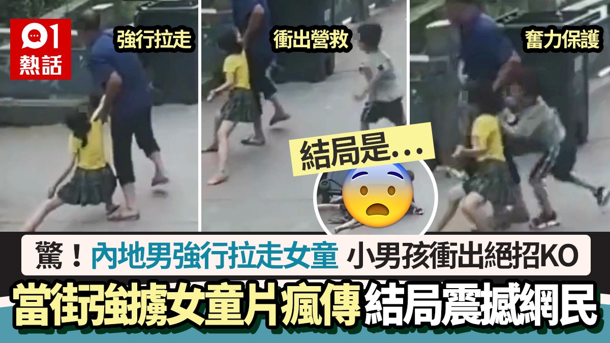 光天化日竟然當街強擄女童?內地小紅書近日廣傳1段影片,見到街上1名男子企圖強行帶走1名女童,女童掙扎不果被拉走,幸危機時刻有小男孩衝出來奮力鎚打男子,終成功救走女童。