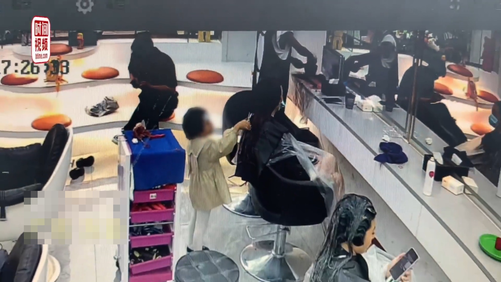 % R, N* \ y' D8 U/ _1 U" v4 o- O廣東6歲女童髮型屋內剪掉顧客長頭髮,其母親最終賠償11500元人民幣。(影片截圖)