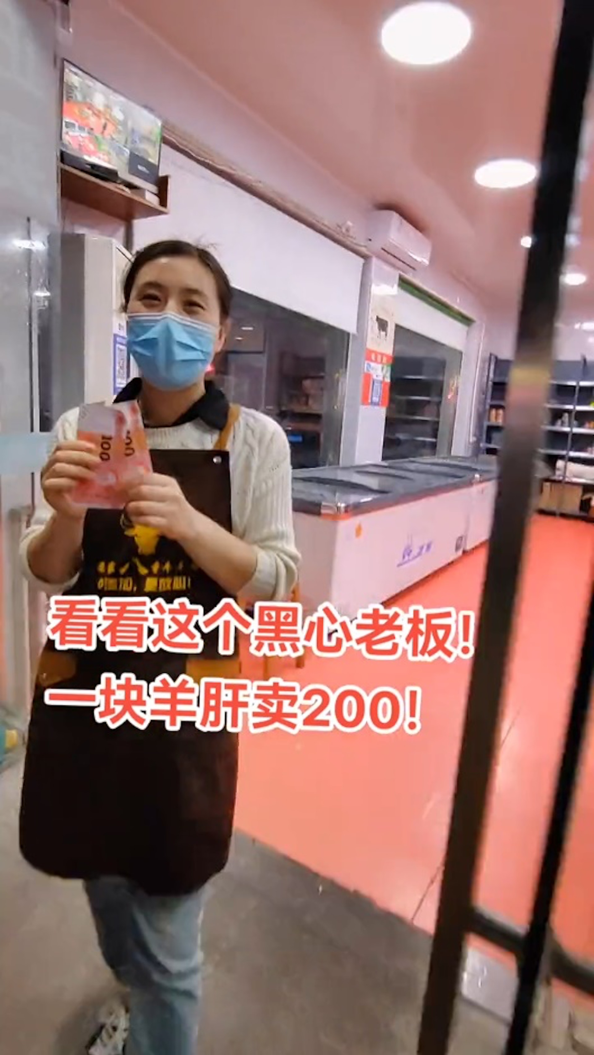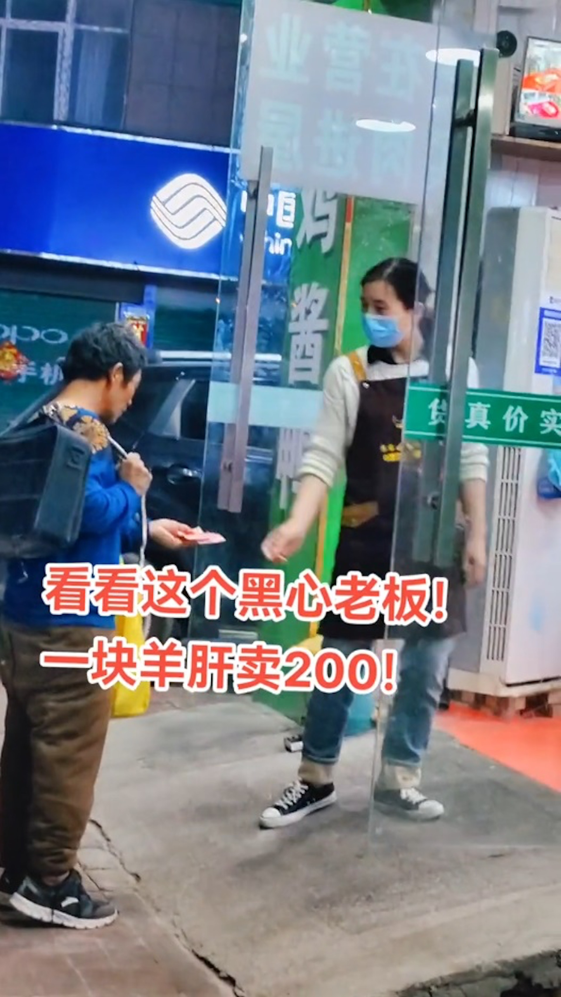一旁的蘇先生拍片並上載到抖音,更配文笑言「看看這個黑心老闆娘,一個羊肝竟然賣200元!」。有網民以為老闆娘欺負拾荒者,為防誤會,蘇先生隨後亦解釋拾荒者手上的200元其實是冥幣。