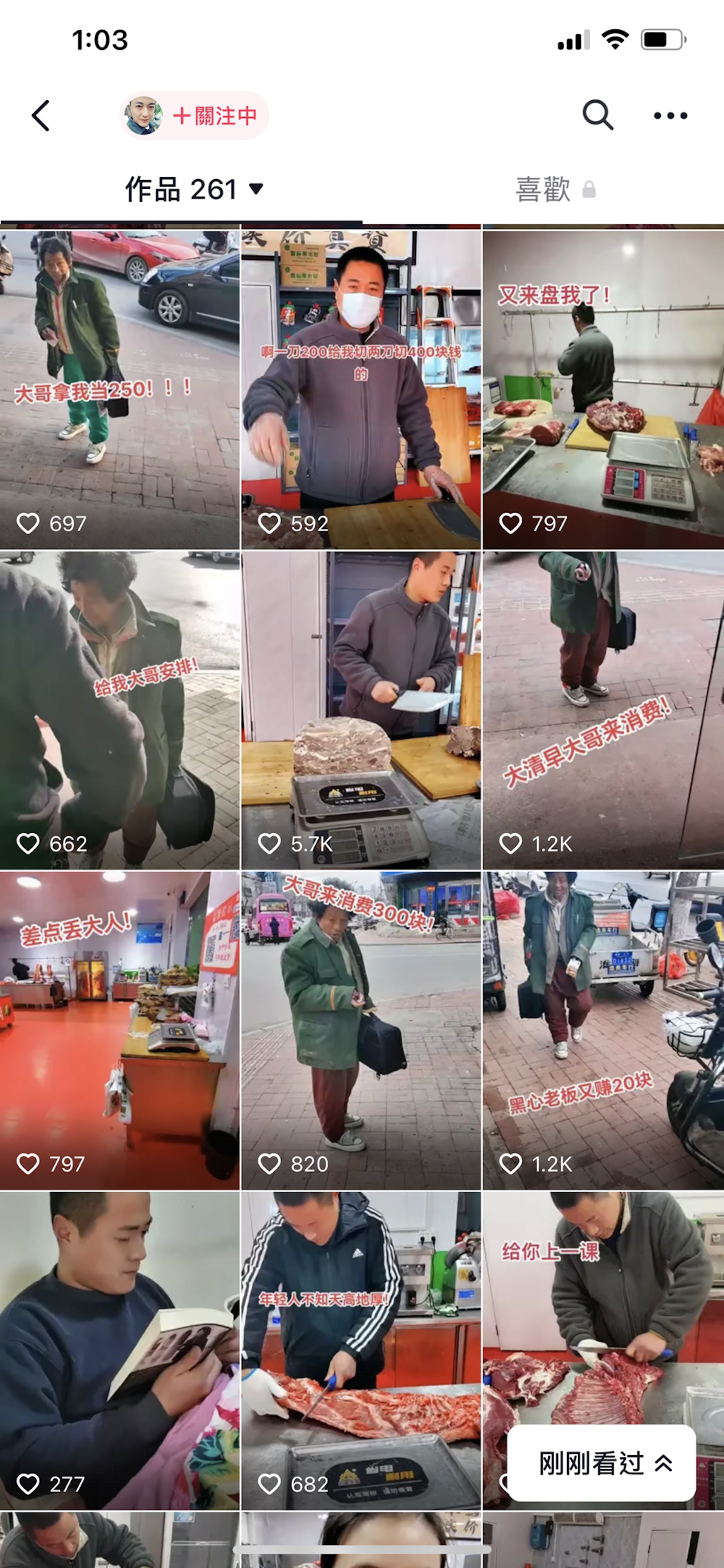 該名拾荒者的身影常常出現在蘇先生的個人抖音平台上。(影片截圖)tvb now,tvbnow,bttvb* p3 d3 |" u, ^* m) n* \0 C: E* k5 V