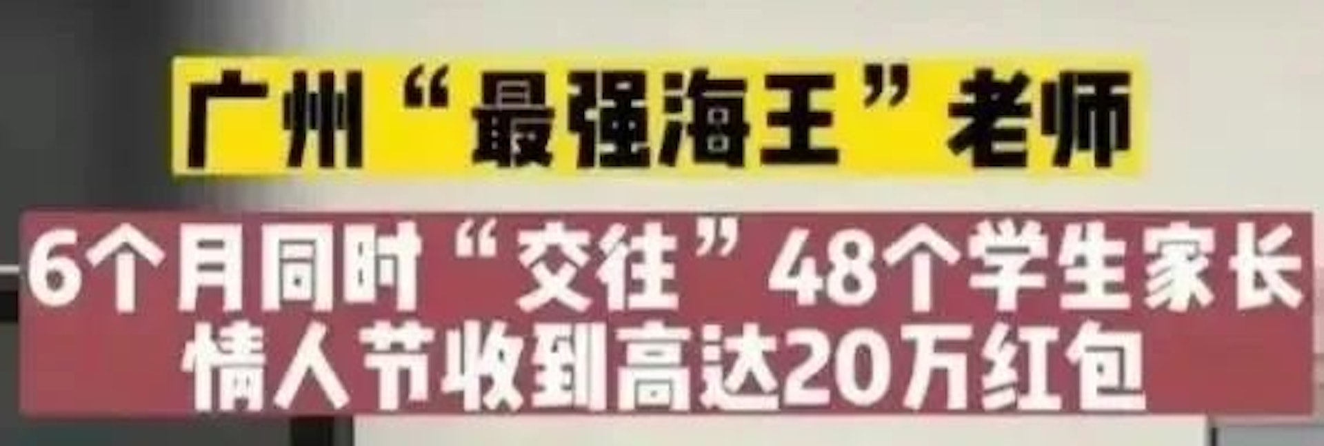 網傳消息,該女教師在6個月左右的時間內,和班級內48名學生的男家長發展不正當關係,更在情人節當日收到共計金額高達20萬元人民幣的紅包,平均每位男家長發出4000元左右的紅包。