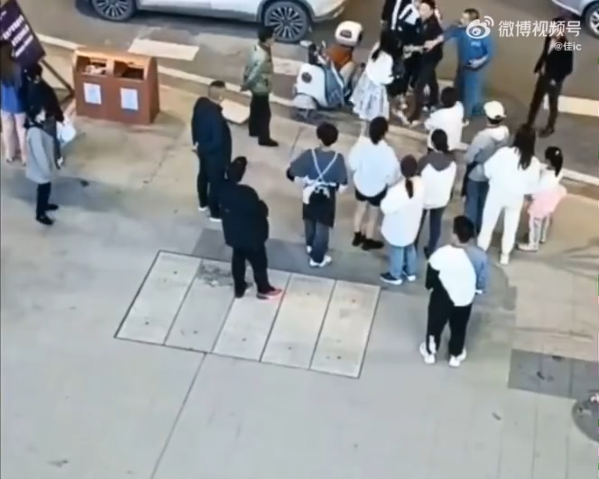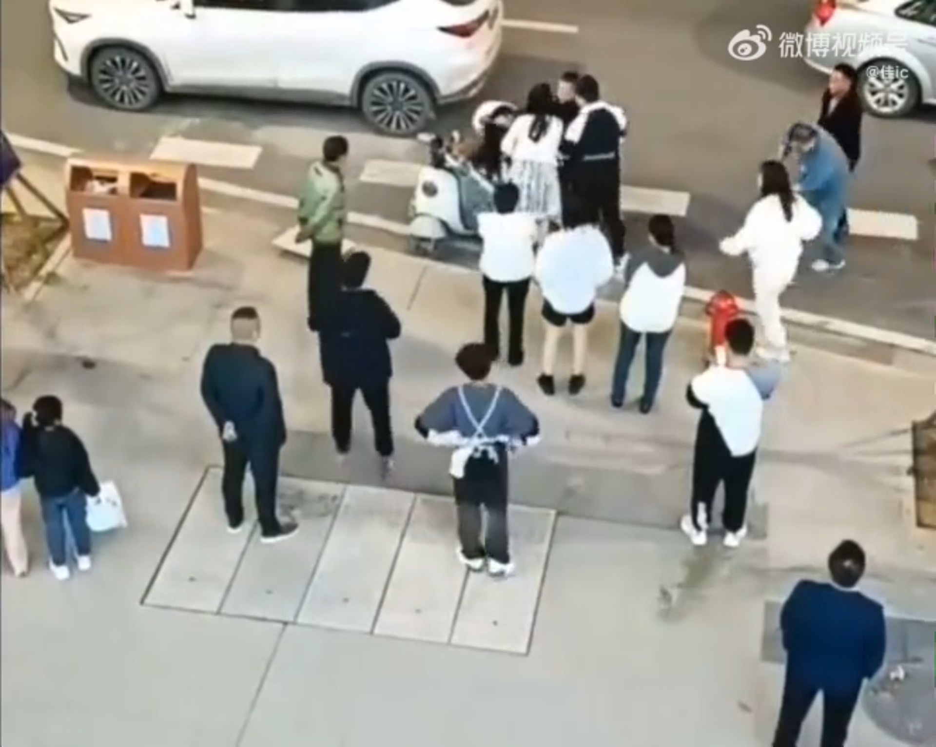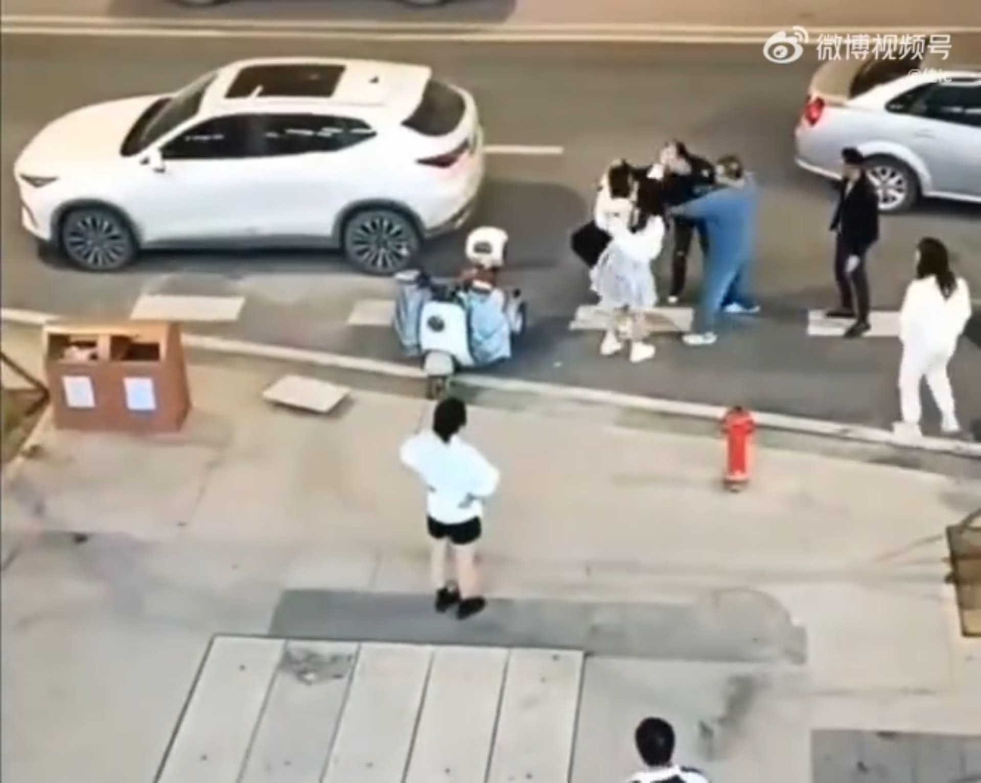 湖南邵陽幾名男女當街發生衝突,有女子遭男子踢飛。(影片截圖)公仔箱論壇# [, ?5 l6 j& a/ h1 V4 |; T
