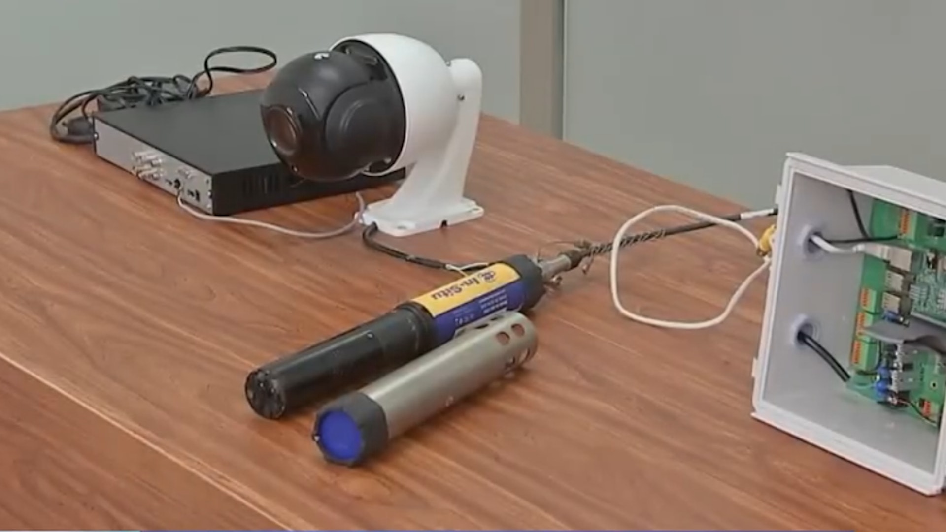 0 B( M3 |) U8 A9 P/ j所謂「海水質量監測設備」實為間諜裝置。(央視新聞)