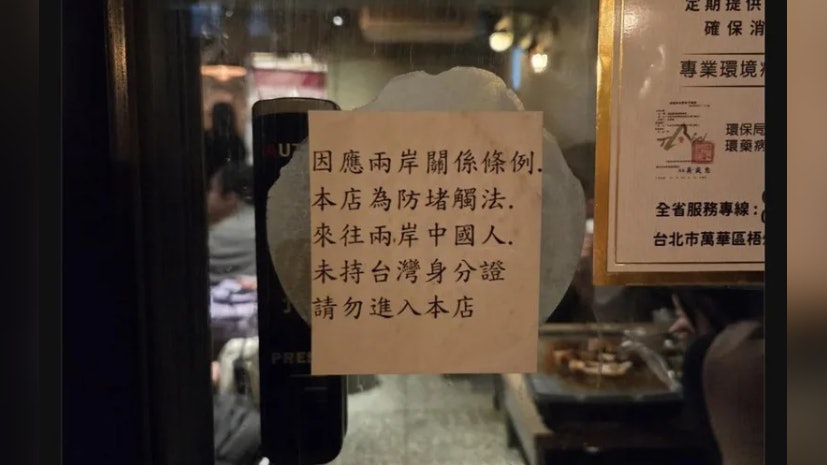 近日萬華一家店貼出公告,表明禁止未持台灣身分證的「兩岸中國人」進店,引起關注,台灣陸委會表示,該店違法雇大陸人已移送地檢署。(Threads)