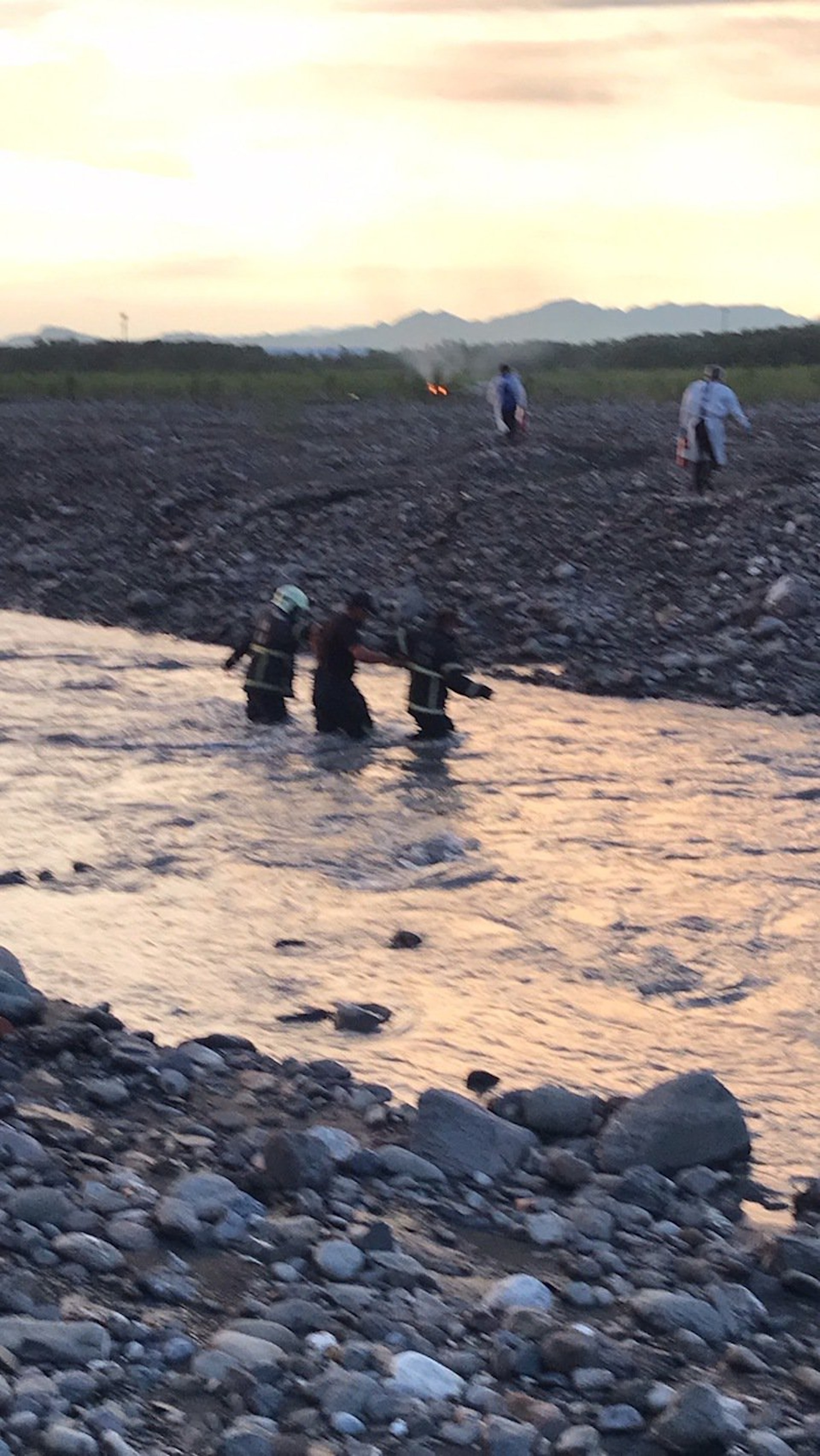 綜合台灣中央社、聯合報、民視報道,屏縣消防局表示,下午5點48分接報輕航機事故,立即派遣特搜大隊等12車22人趕往。事故現場在隘寮溪河床,救援不易,警消涉溪才抵墜機現場,發現輕航機仍不斷竄出火苗,撲滅火勢後發現二具焦屍,因已明顯死亡,未送醫。3 V: l3 D( T3 ?: R- ?