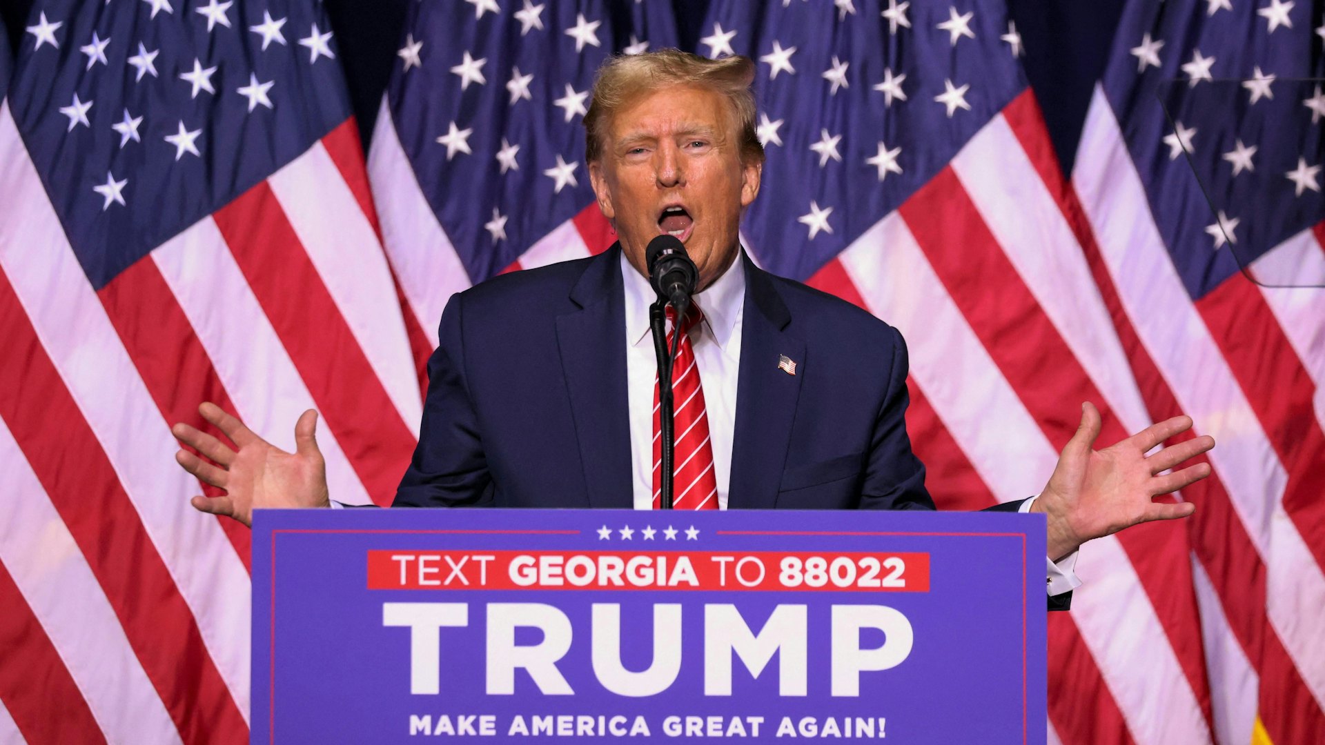 ! e% N+ l( v, k- A5.39.217.76圖為美國共和黨總統參選人、美國前總統特朗普2024年3月9日出席在喬治亞州羅馬(Rome)Forum River Center舉行的競選集會並發言。(Reuters)