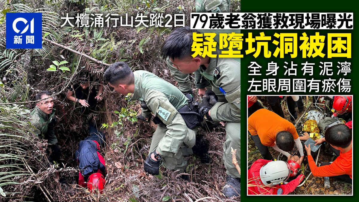 3 B! V2 W7 U9 t4 }+ mtvb now,tvbnow,bttvb79歲姓何老翁4月4日在大欖涌行山期間與妻子失散,救援人員連日搜救,終在4月6日尋回何翁。人員用山兜將其抬出,為他戴上頭盔、蓋上金屬保暖毯以防失溫,他臉上、雙手和衣服均沾滿泥土。(警方圖片)