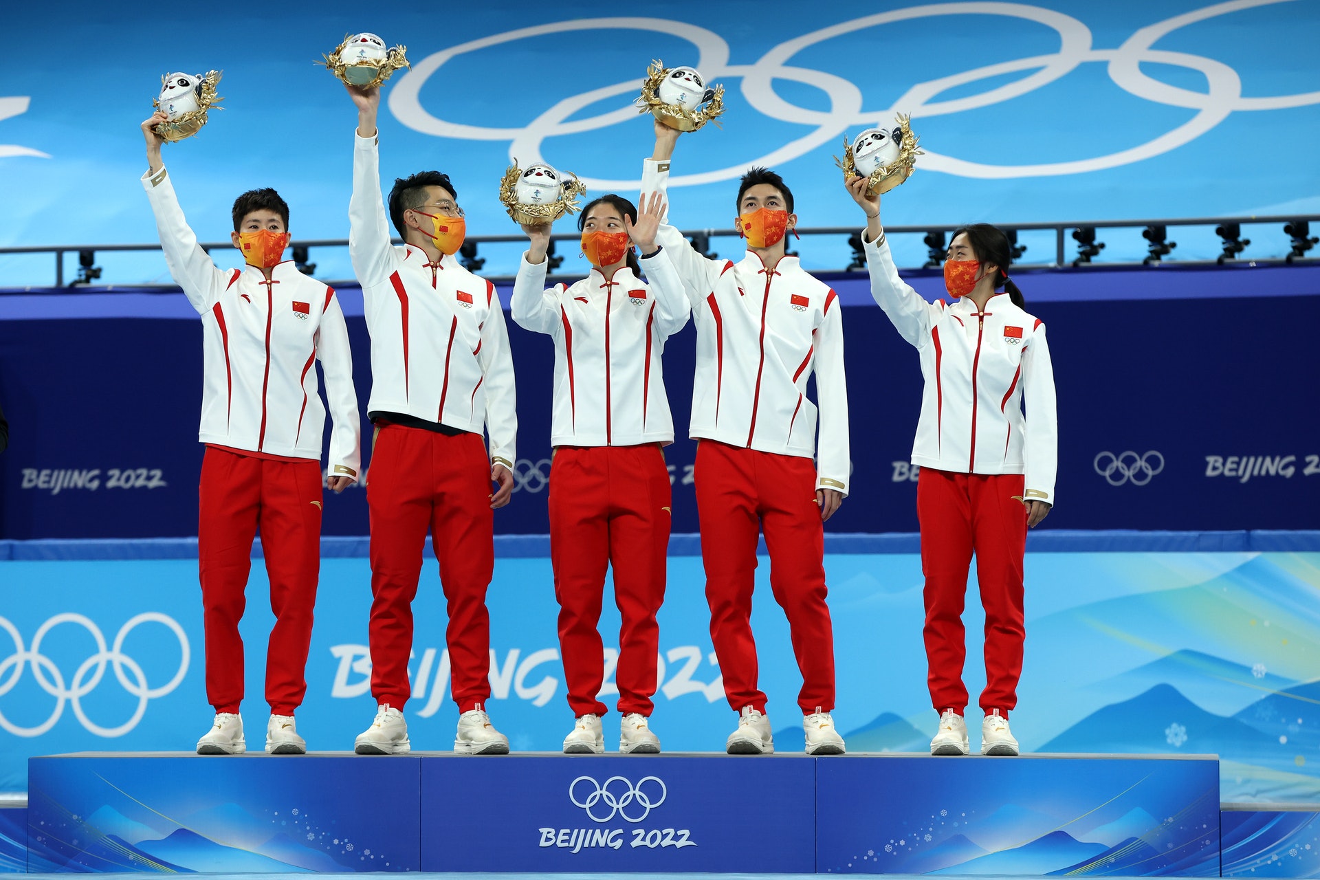 & F0 B8 q: B. \# |2 E" Y公仔箱論壇短道速滑混合接力隊為中國隊拿下今屆冬奧首金。(Getty Images)