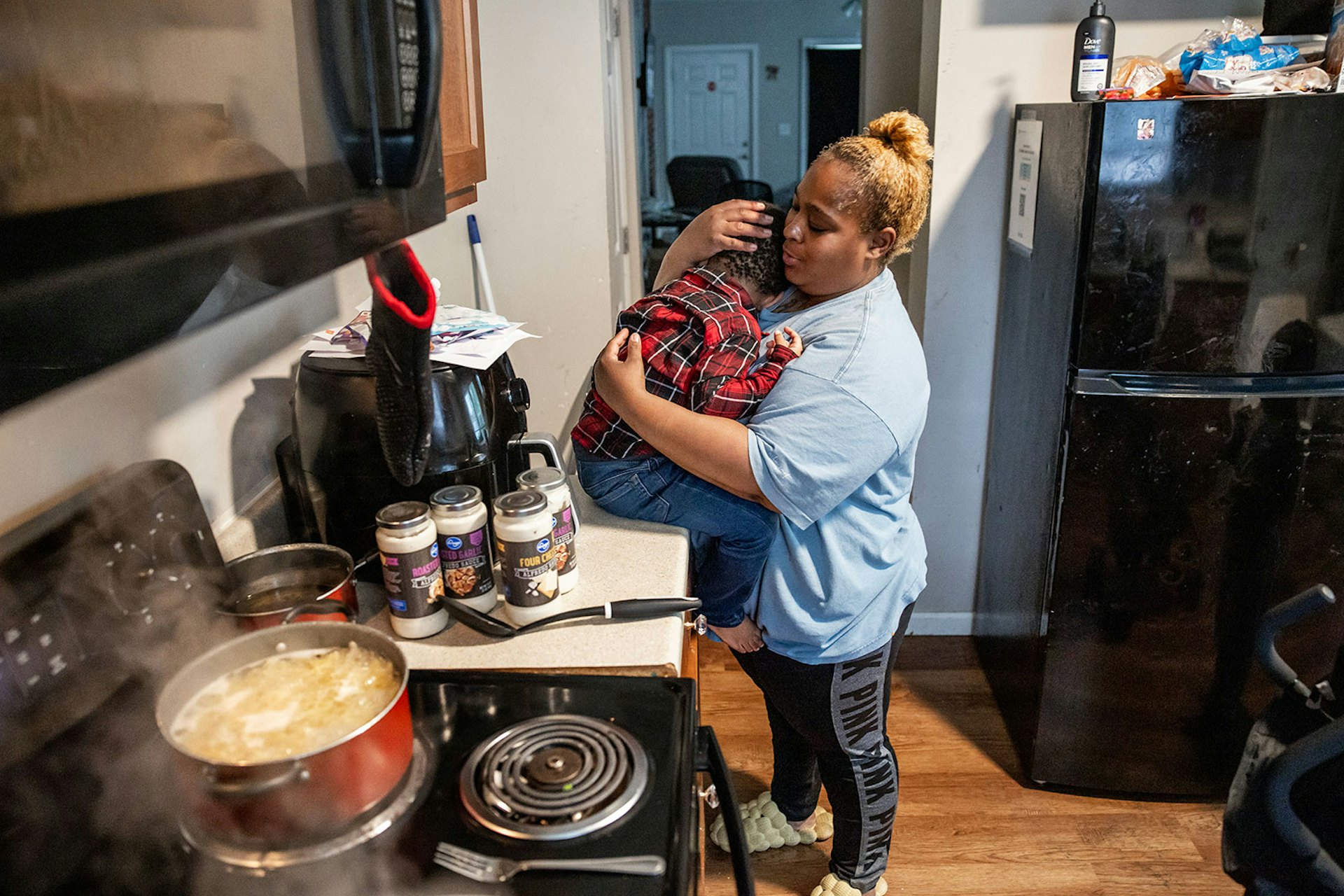 37歲的福林斯(Shannon Follins)和她的3個孩子住在俄亥俄州,平日她主要的工作是在華夫餅屋(Waffle House)上晚班,時薪僅有5.25美元(約41港元),比香港目前的最低工資還要少。除了家人在有需要時送來的生活用品外,福林斯還很依賴由中俄亥俄糧食聯盟(Mid-Ohio Food Collective)提供的食物援助,來節省開支。tvb now,tvbnow,bttvb# p, E/ r) S$ Z2 I