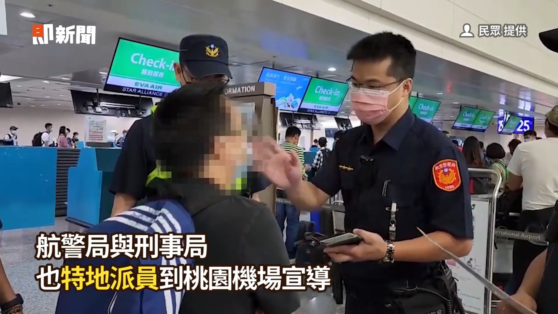 航警與刑事局1日清晨在飛往柬埔寨的櫃檯前,遇見一名從高雄來的基督教教友蘇男,稱其受名為「芳芳」的女教友邀請到柬埔寨賭場做荷官,還送他單程機票,即便員警苦勸,他仍認為這是「上帝最好的安排」,深信教友不會騙他,最後和員警堅持好一段時間才放棄前往。(影片截圖:YouTube@即新聞)