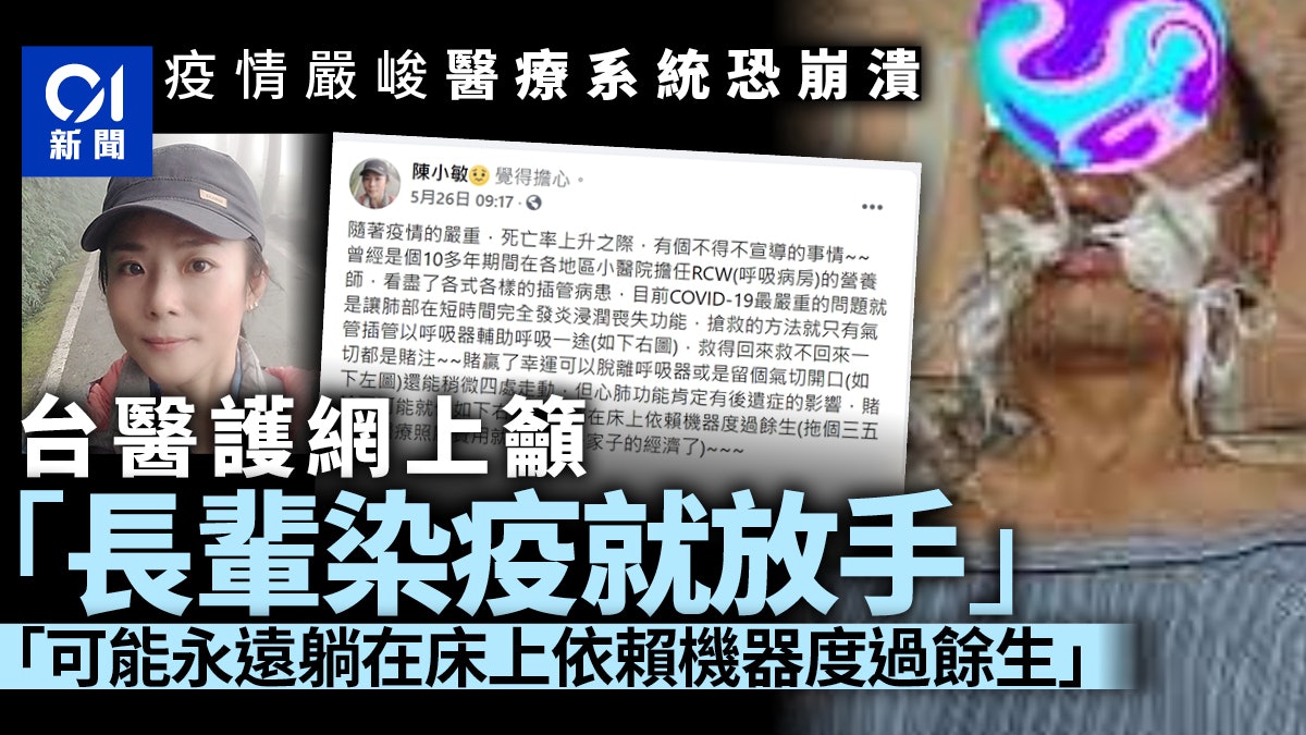 全台26日新增11例因新冠肺炎死亡個案,自11日起共計34例身亡,指揮中心表示,死者年齡大多落在50餘歲至70餘歲,且有慢性病史,對此一名自稱在呼吸病房有10多年資歷的營養師表示,若遇到年事已高且有慢性病的長輩不幸確診重症,「真的就放手吧」。tvb now,tvbnow,bttvb3 U# t; j' z/ K) n1 S4 A