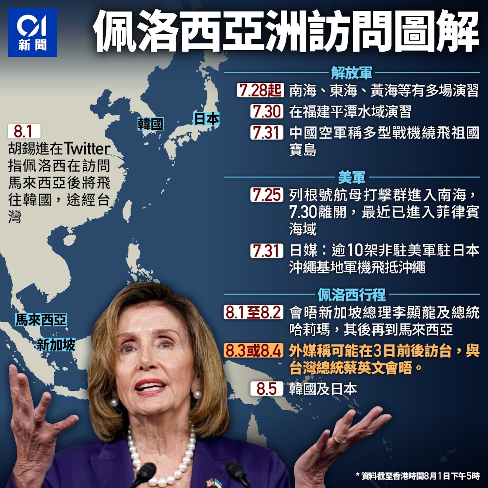 ; M# F/ S$ |8 V. ]' w/ Y1 b& J% J- ~目前仍未能確定佩洛西是否在專機上,根據FlightRadar24數據,另一架C-40C專機(呼號SPAR20)8月2日上午從日本東京出發,約11時52分也抵達吉隆坡雪邦國際機場。現時尚未清楚為何兩架C-40C專機同時與佩洛西出現吉隆坡。