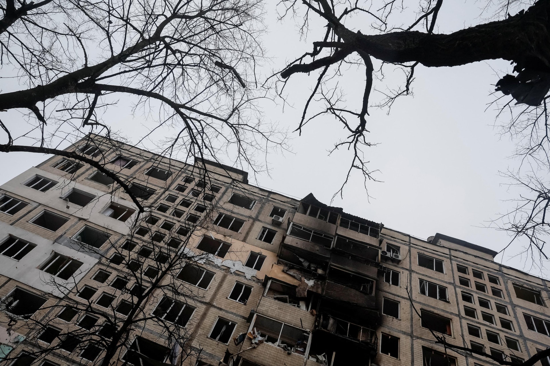 2023年12月13日,烏克蘭首都基輔遭導彈襲擊,碎片造成建築物受損。(Reuters)